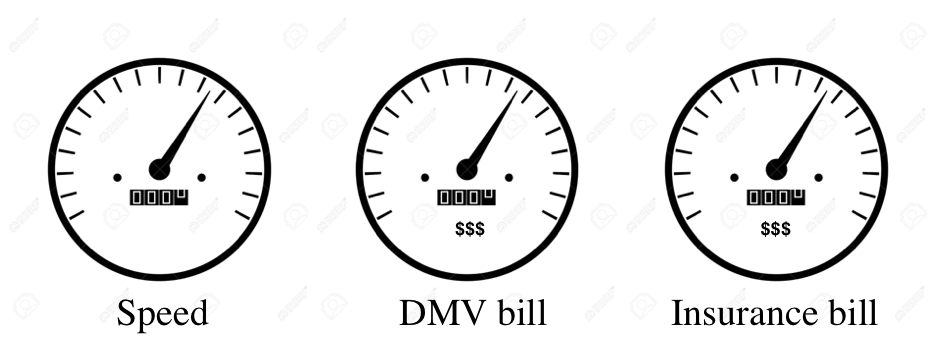 Enforcement technology might someday invade our own devices. Suppose that the cop in the backseat were not a friendly cop but instead a cop with the power to ding us for violations of the law. In the case of a computerized policeman with an internet connection, we could imagine the policemen immediately reporting the violation to the DMV (Department of Motor to Vehicles). Insurance companies already make devices that track and report driving performance, allowing conservative drivers to benefit from lower rates and increasing the premiums for more aggressive drivers. Taking this one step further, we can imagine cars showing the results of such reporting to their drivers as well other performance factors. The cars could display not just actual speeds, but also speed limits, DMV fine balances, insurance premiums, and so forth. It would be interesting to see the effects of such reporting on drivers. Would they drive more conservatively when they see their bills mounting every time they exceed the speed limit?