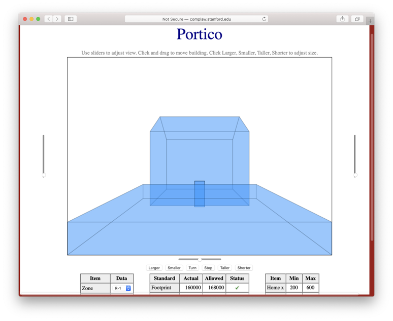 Of course, taxes are not the only application of Computational Law in compliance management. There are many other areas of the law that are amenable to similar treatment. Portico is a prototype of a system developed at Symbium for assisting architects and homeowners in formulating architectural designs that comply with planning codes and building codes. Analogous systems can be built other areas areas - e.g. management of child support, immigration aids, and building inspections.