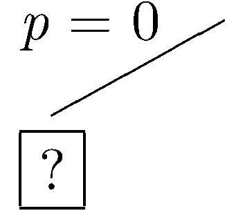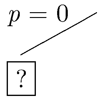 Let's start with the assumption that p is not in the dataset (i.e. p=0). This leads to the partial tree shown below.
