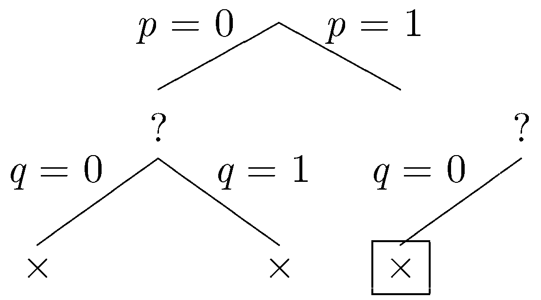 | illegal :- ~p & ~q | | illegal :- ~q |